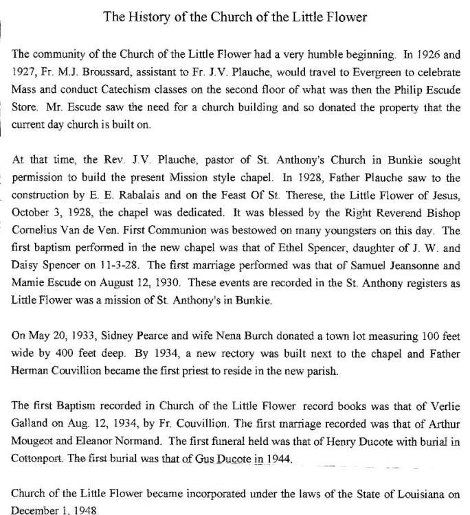 WELCOME TO THE LITTLE FLOWER HISTORY PAGE