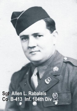 He served in France and Germany with the 104th Inf. Timberwolves Division. Allen entered France at Normandy six days after D-Day (June 6, 1944) and fought across France and Germany until the U.S. forces met the Russians outside of Berlin. He was awarded the Bronze Star which he received just before his death.
