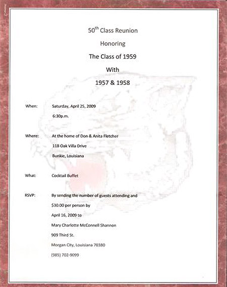 Bunkie High School Class Reunion Honoring Class of 1959 with 1957 and 1958 by Mary "Gail" Aymond Bordelon