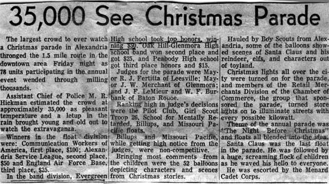 This is an undated news story about the Evergreen Band's performance in the Alexandria Christmas Parade.